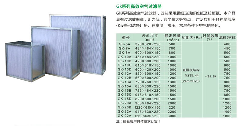 有隔板高效空气过滤器